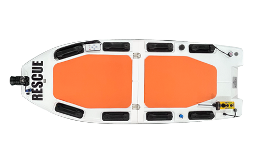 續(xù)航90min/遙控距離1500m/救援負(fù)載250kg/前進(jìn)速度16節(jié)(8m/s)/支持20米跌落/支持語音播報(bào)、視頻傳輸
